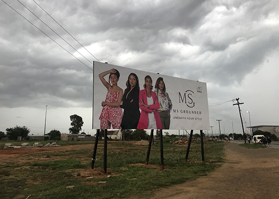 The Ms Grounded billboard is stationed at the corner of Dr Belcher and George Lubbe Str in Heidedal, Bloemfontein